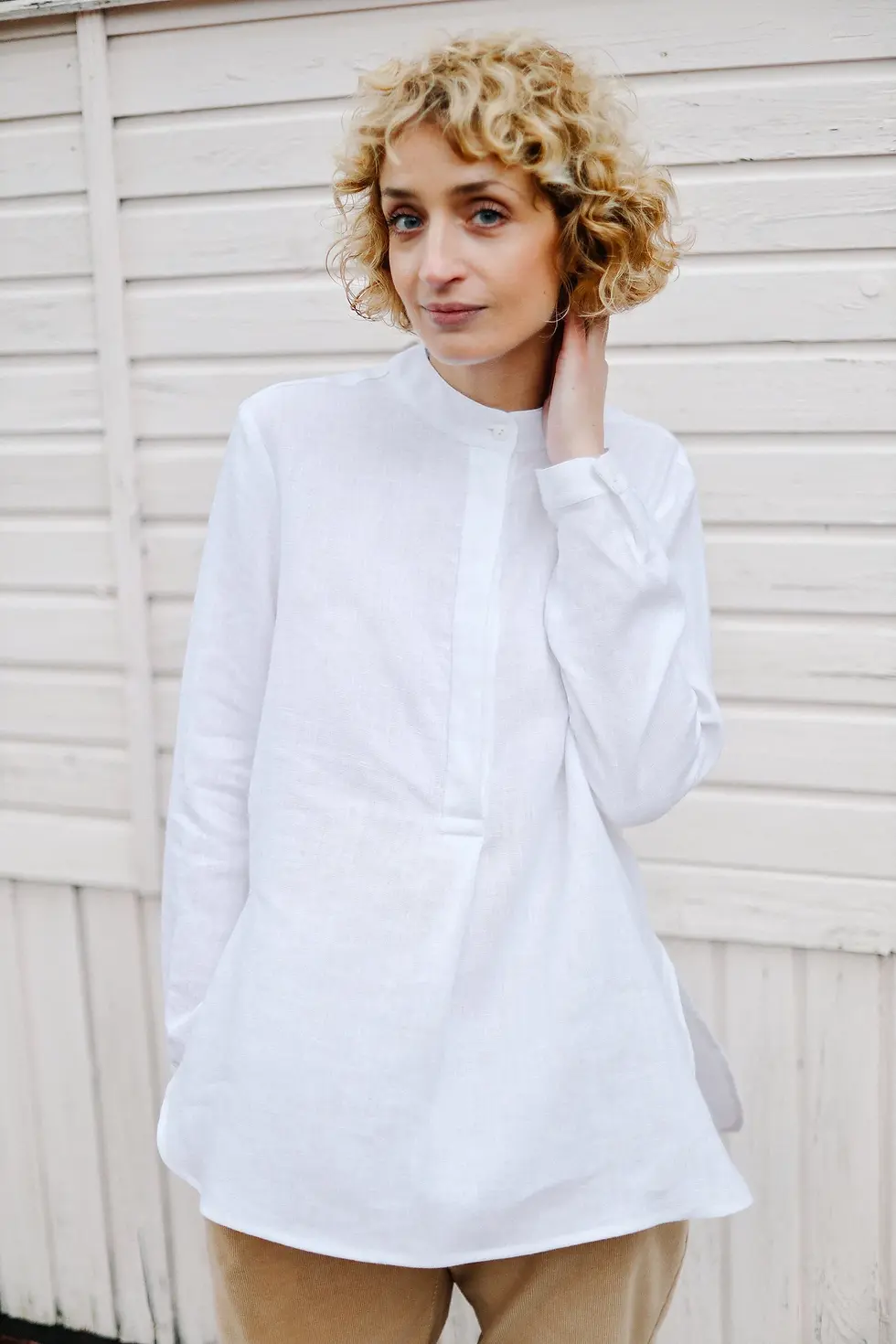 Linen mandarin collar shirts / Pull on long shirt / OFFON CLOTHING